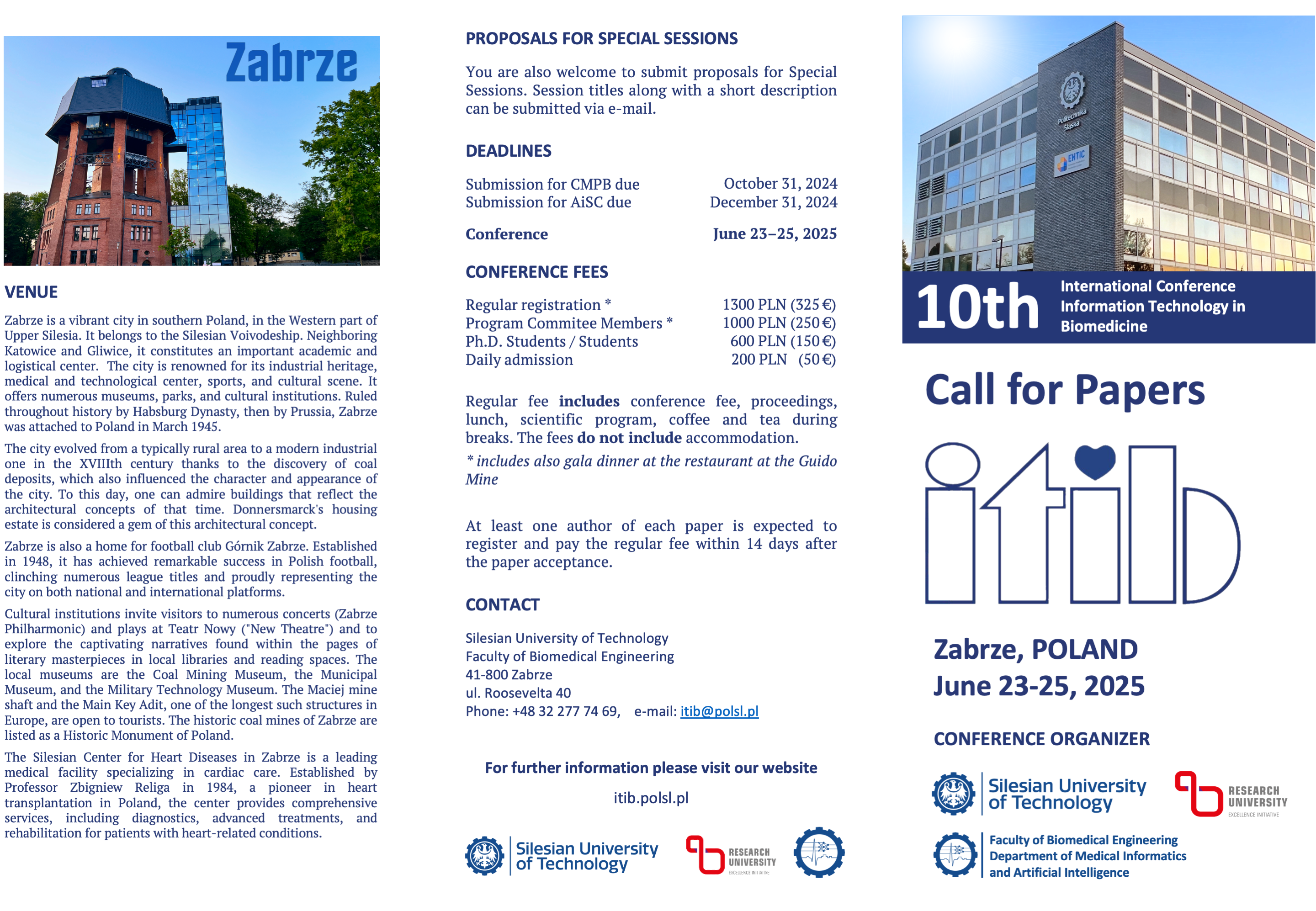 It is our pleasure to invite you to the 10th ITiB 2025. The conference will take place on June 23-25, 2025 in Zabrze, Poland.